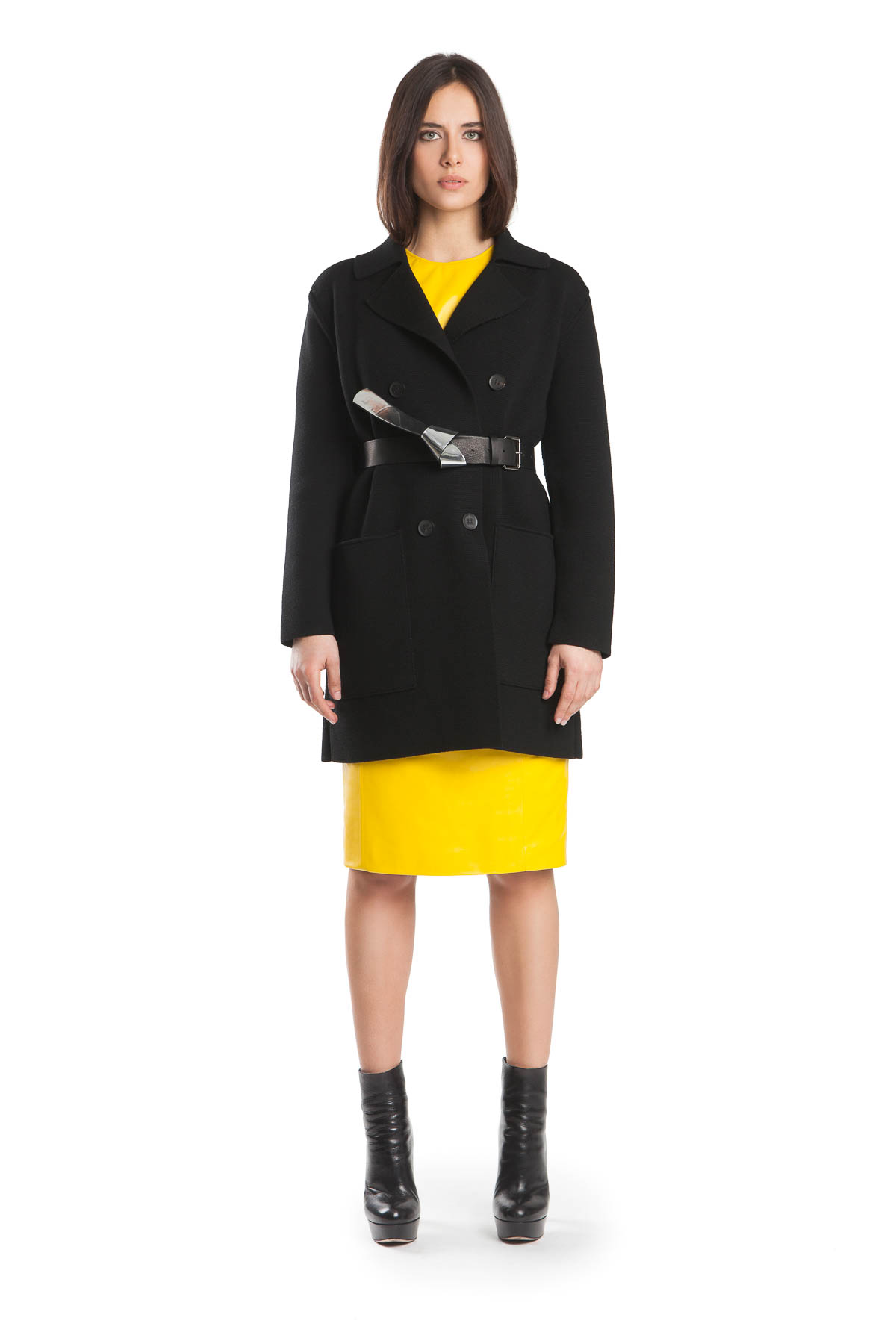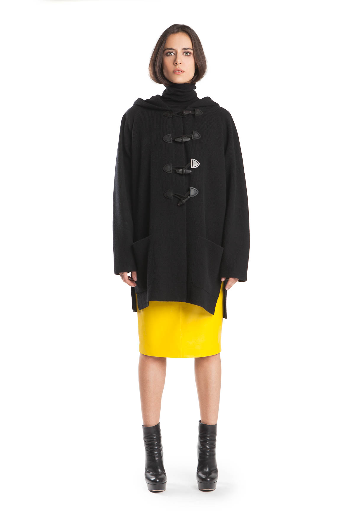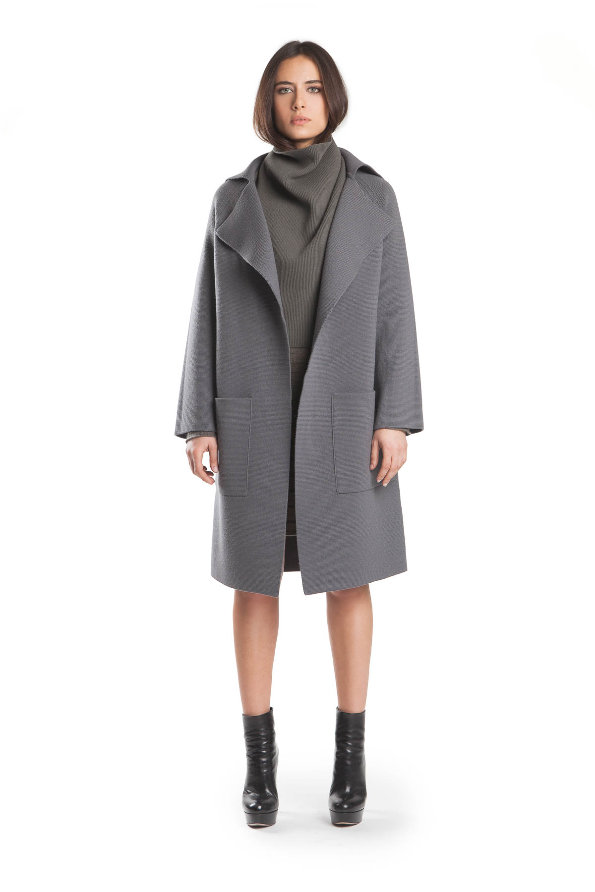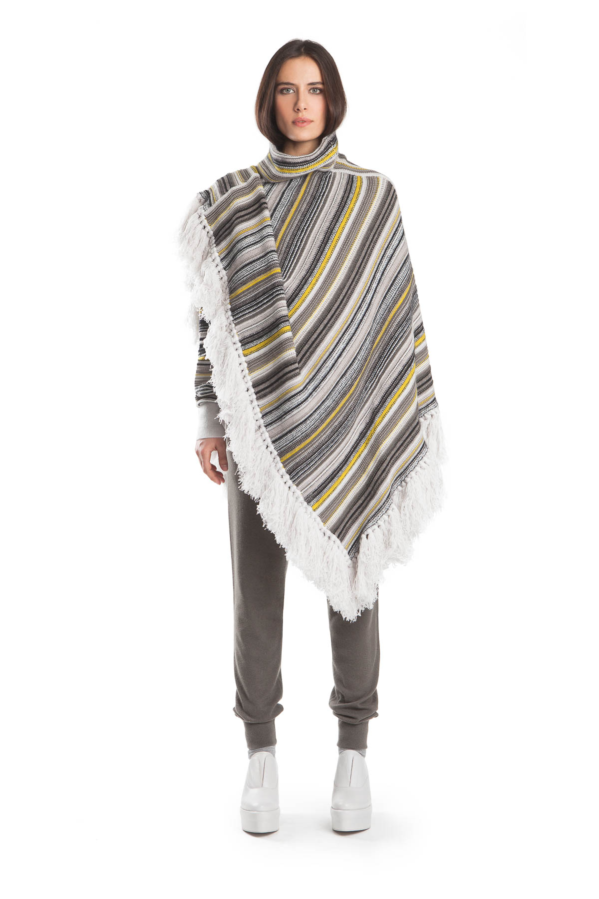 High neck cardigan 43% cotton + 31% polyamide + 26% wool merino extrafine CD18.453 col. 27580D Crewneck 43% cotton + 31% polyamide + 26% extrafine merino wool CD16.455 col. 27580D Neck warmer 70% cashmere + 20% mohair + 5% polyester +5% polyamide AD18.130 var. 2 Belt 100% leather AD18.951 var. 1