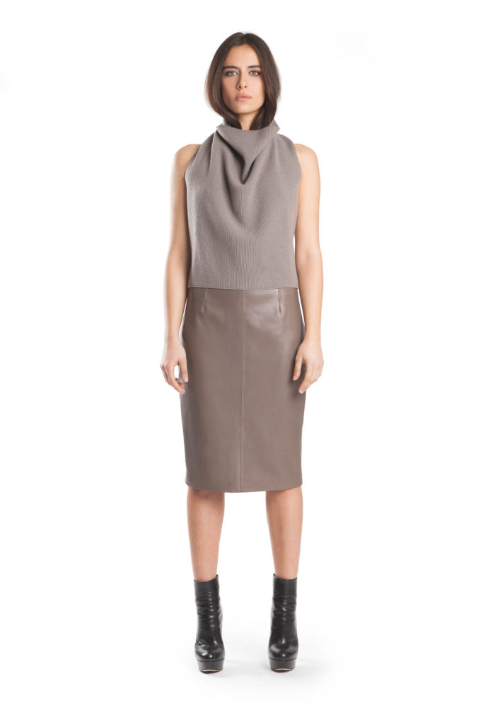 Look 11 Skirt 100% leather CD18.951 col. taupe Jabot 70% lambswool + 30% cashmere CD18.374 col. 303843