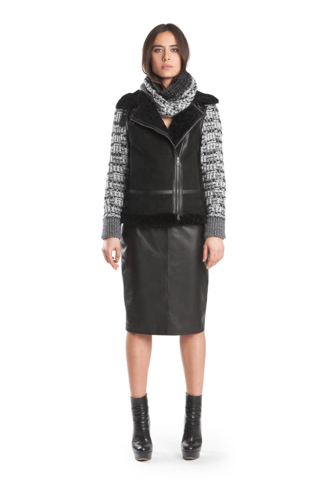 Jacket: front 100% leather + back fabric 100% polyamide + sleeves 70% cashmere + 20% mohair + 5% polyester + 5% polyamide CD18.980 var. 1